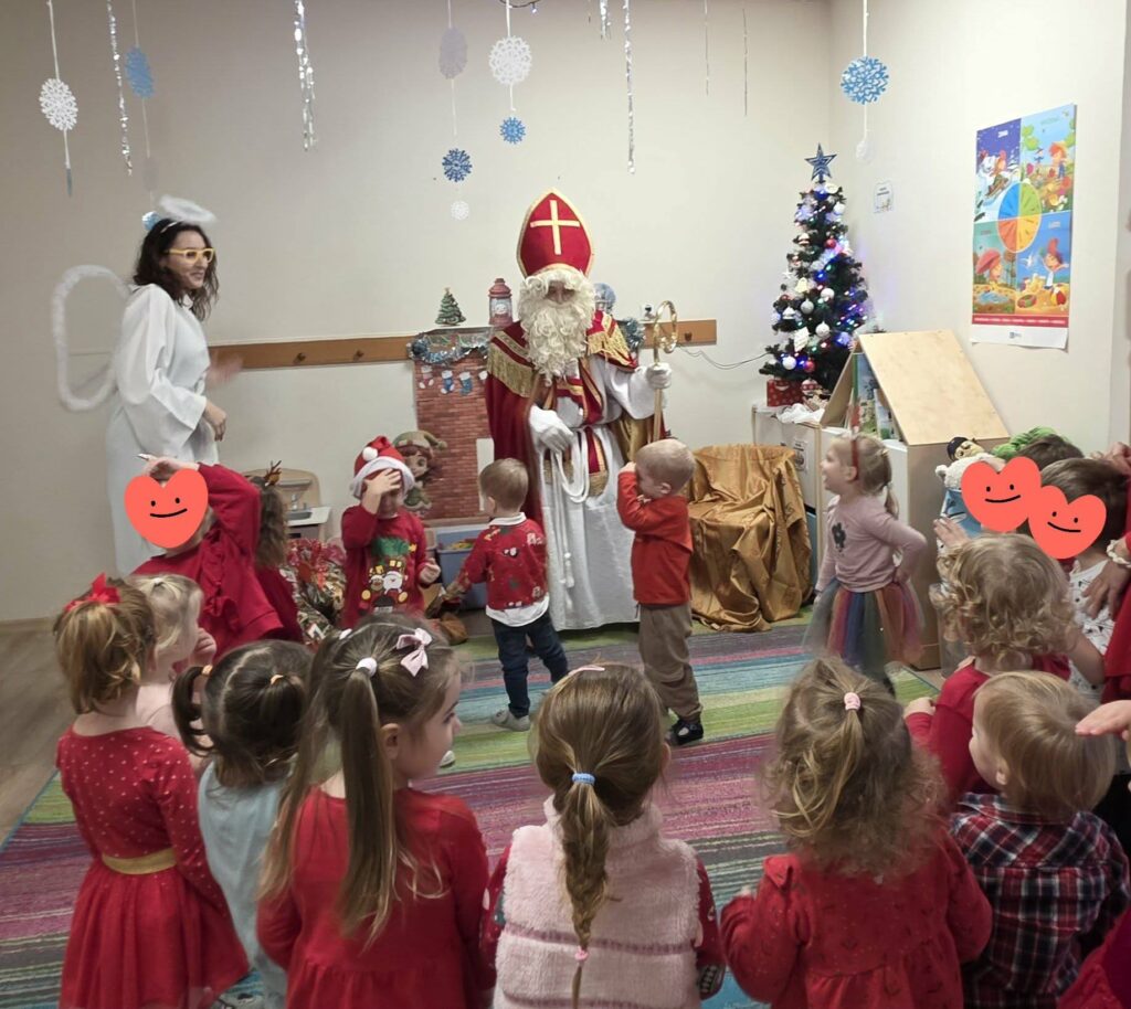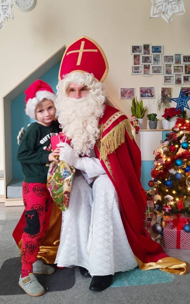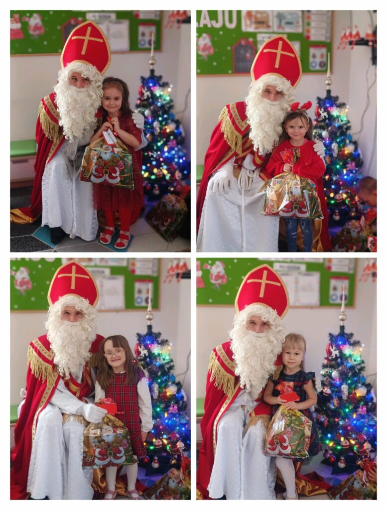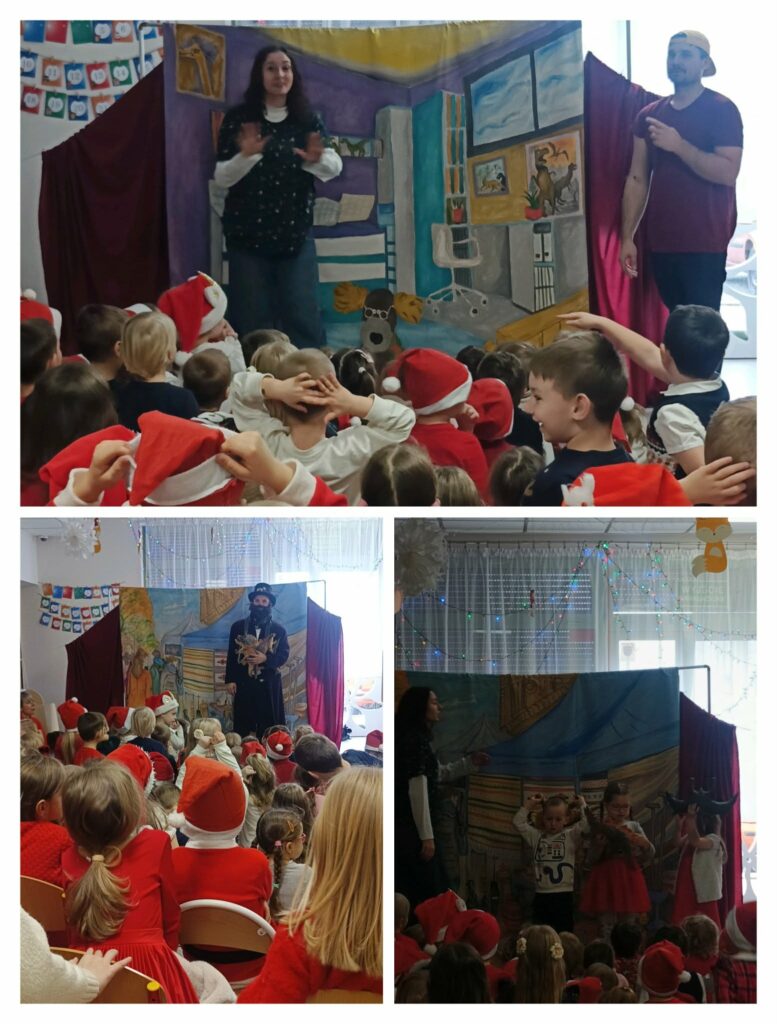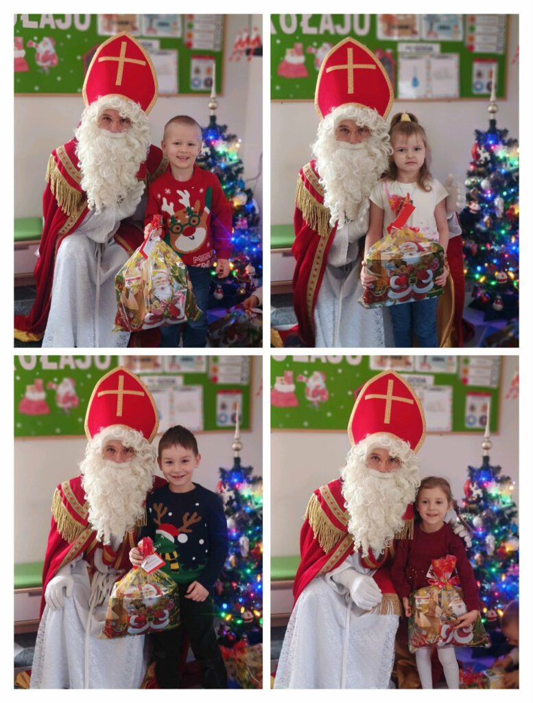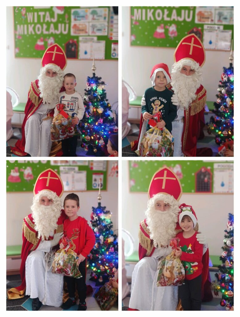 4 grudnia w naszym przedszkolu odbyło się wyjątkowe wydarzenie. Zanim pojawił się długo wyczekiwany gość – Święty Mikołaj – dzieci obejrzały przedstawienie teatralne przygotowane przez Teatr Eden. Spektakl opowiadał o tym, że najważniejsze nie są prezenty, lecz dobre serce, życzliwość i chęć pomagania innym. Po zakończonym teatrzyku do sali wszedł Święty Mikołaj, którego dzieci powitały z ogromną radością. Przedszkolaki zaprezentowały przygotowane piosenki, a następnie odbyła się rozmowa o świątecznych tradycjach i dobrych uczynkach. Każde dziecko otrzymało drobny upominek i mogło zrobić sobie pamiątkowe zdjęcie.